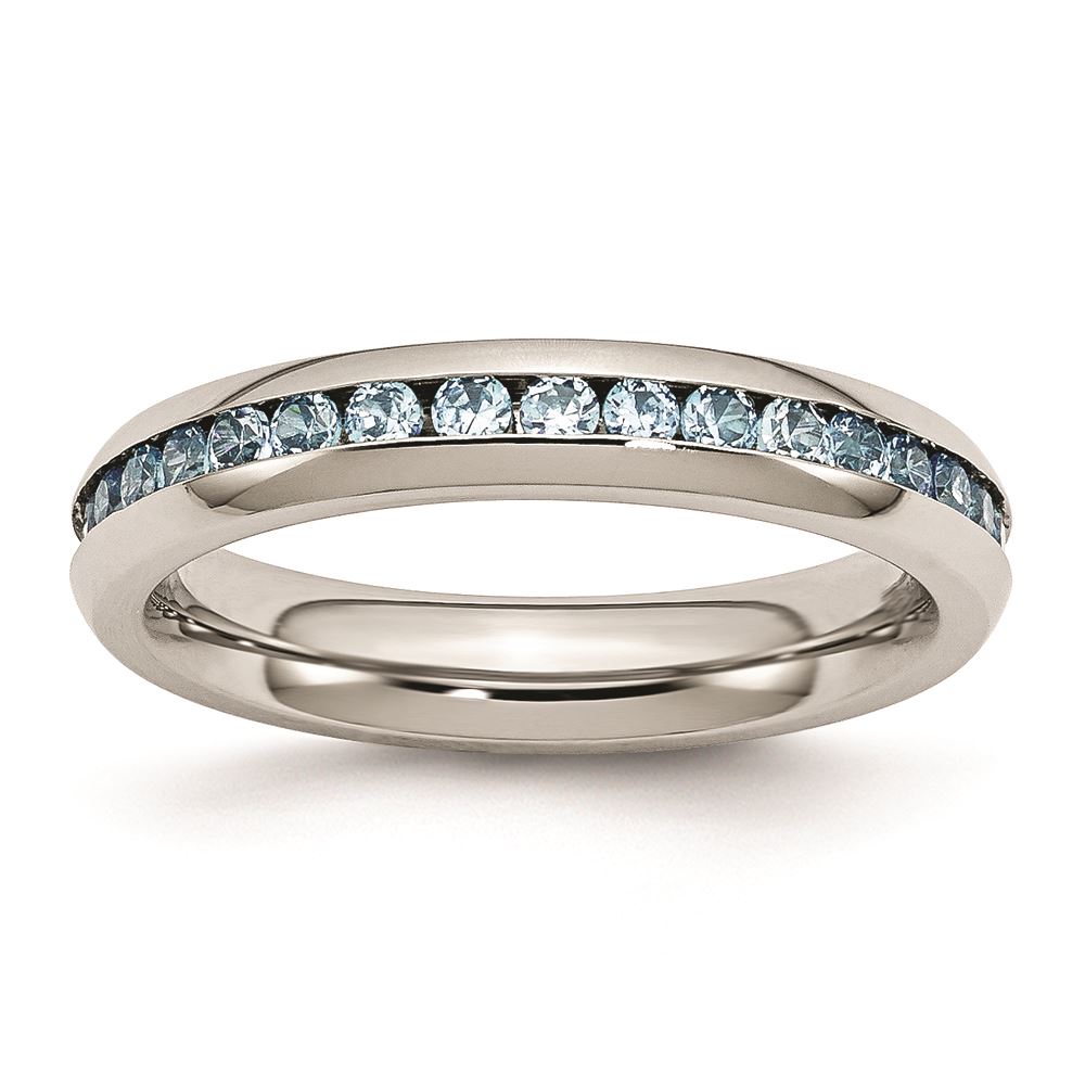 Stainless Steel 4 Mm Birthstone December Teal Cz Wedding Band Ring Ebay