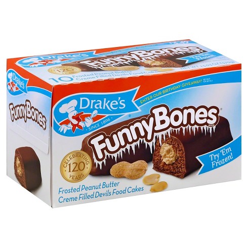 Drake S Funny Bones Frosted Peanut Butter Creme Filled Devils Food Cakes 10ct 13 63oz Target