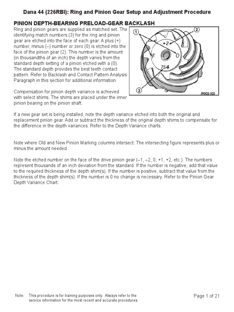 Pinion gear depth. Ring and pinion gear pattern interpretation adjustment. First set the backlash using only light carrier bearing preload.