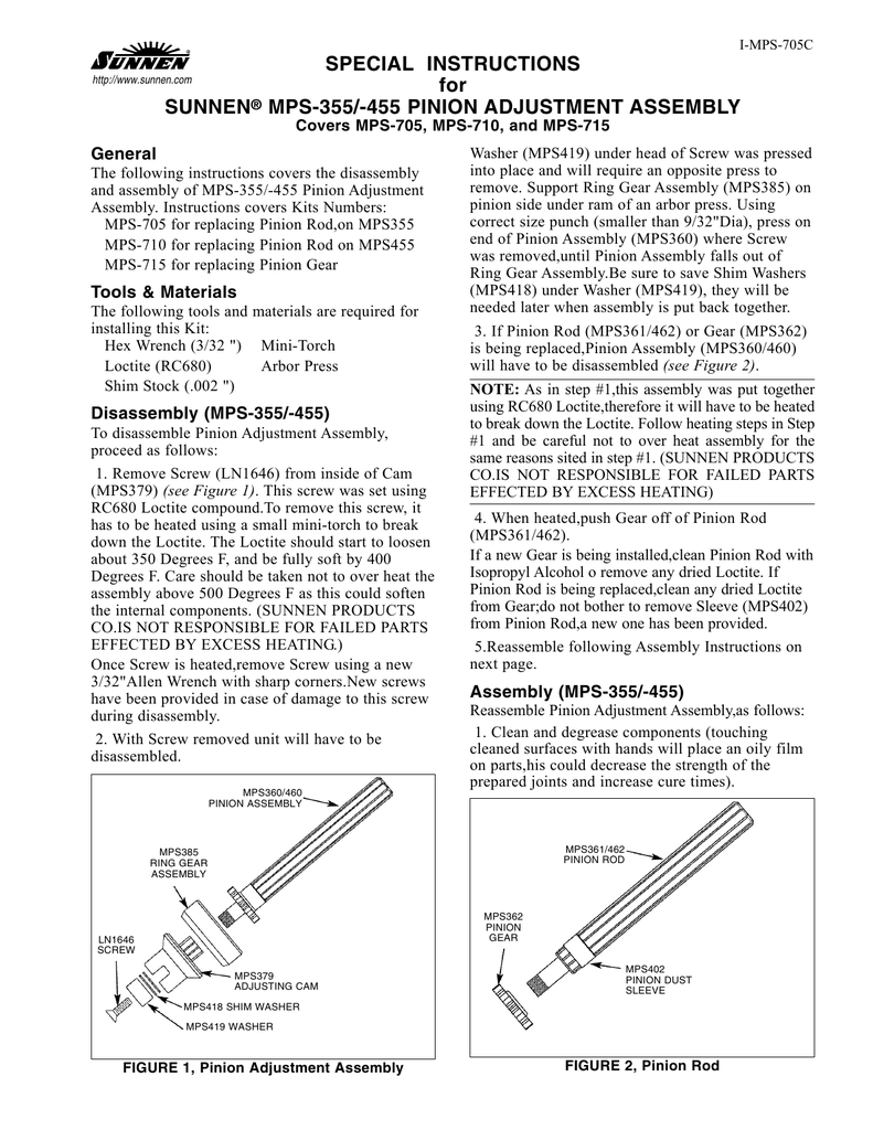 I Mps 705 Pinion Adjustment Assembly Manualzz