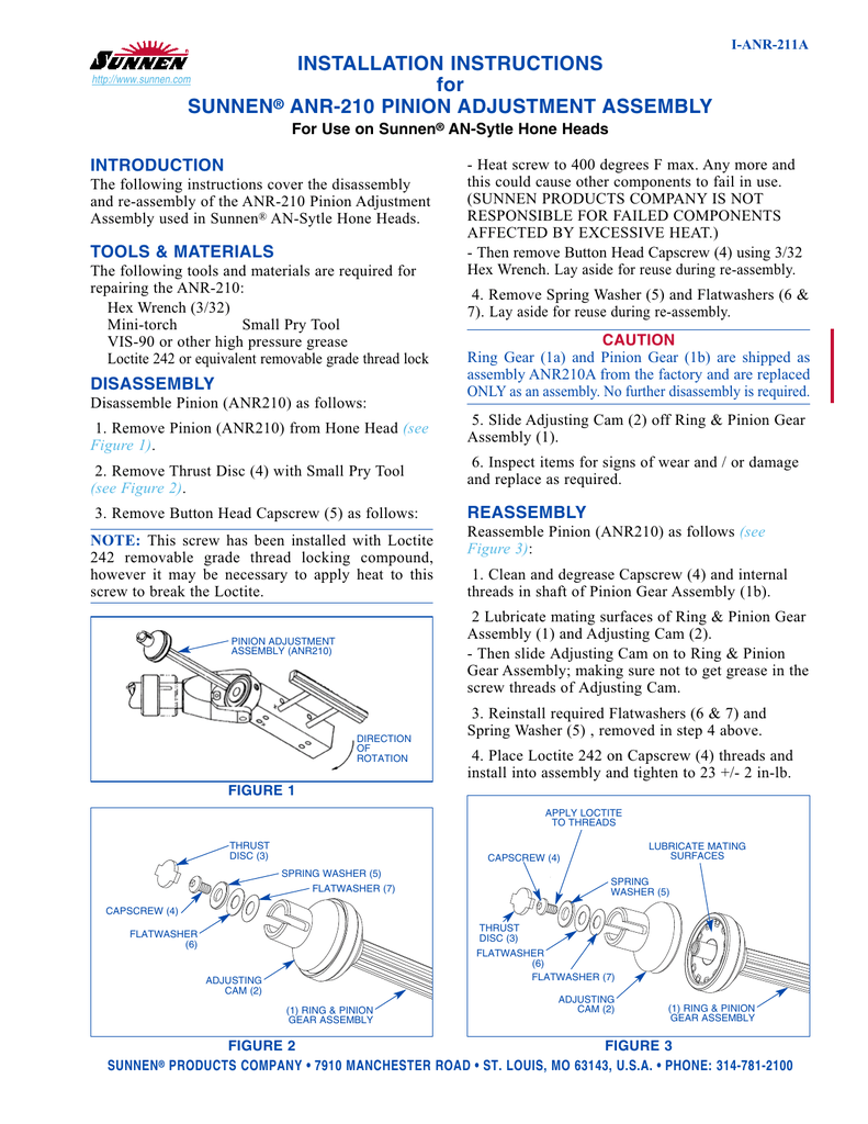 I Anr 211 Anr 210 Pinion Adjustment Assembly Manualzz