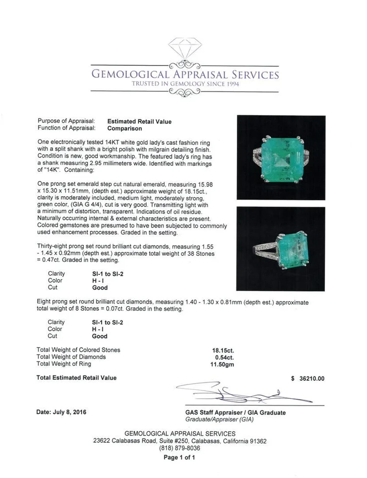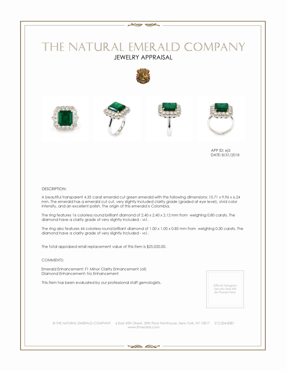 Emerald Ring Appraisal Report Emeralds Com Emeralds Com