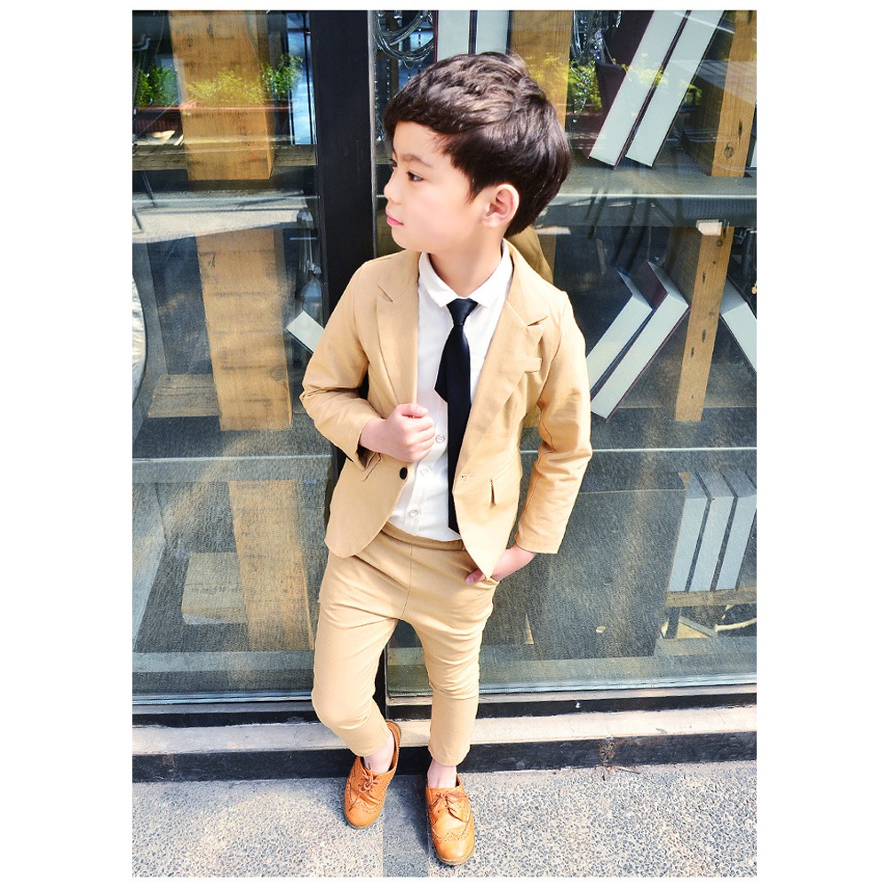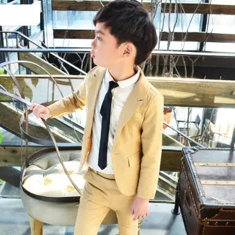 Boys Khaki Suits Wedding Party Ring Bearer Outfit Blazer Pants Tuxedo For 3 9yrs Lazada Ph