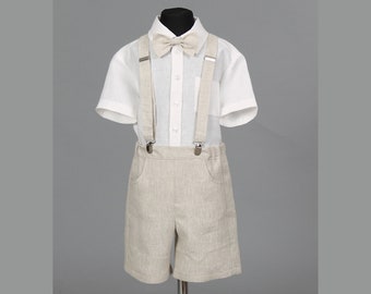 Ring Bearer Outfit Khaki Baby Suspender Shorts Shorts Etsy