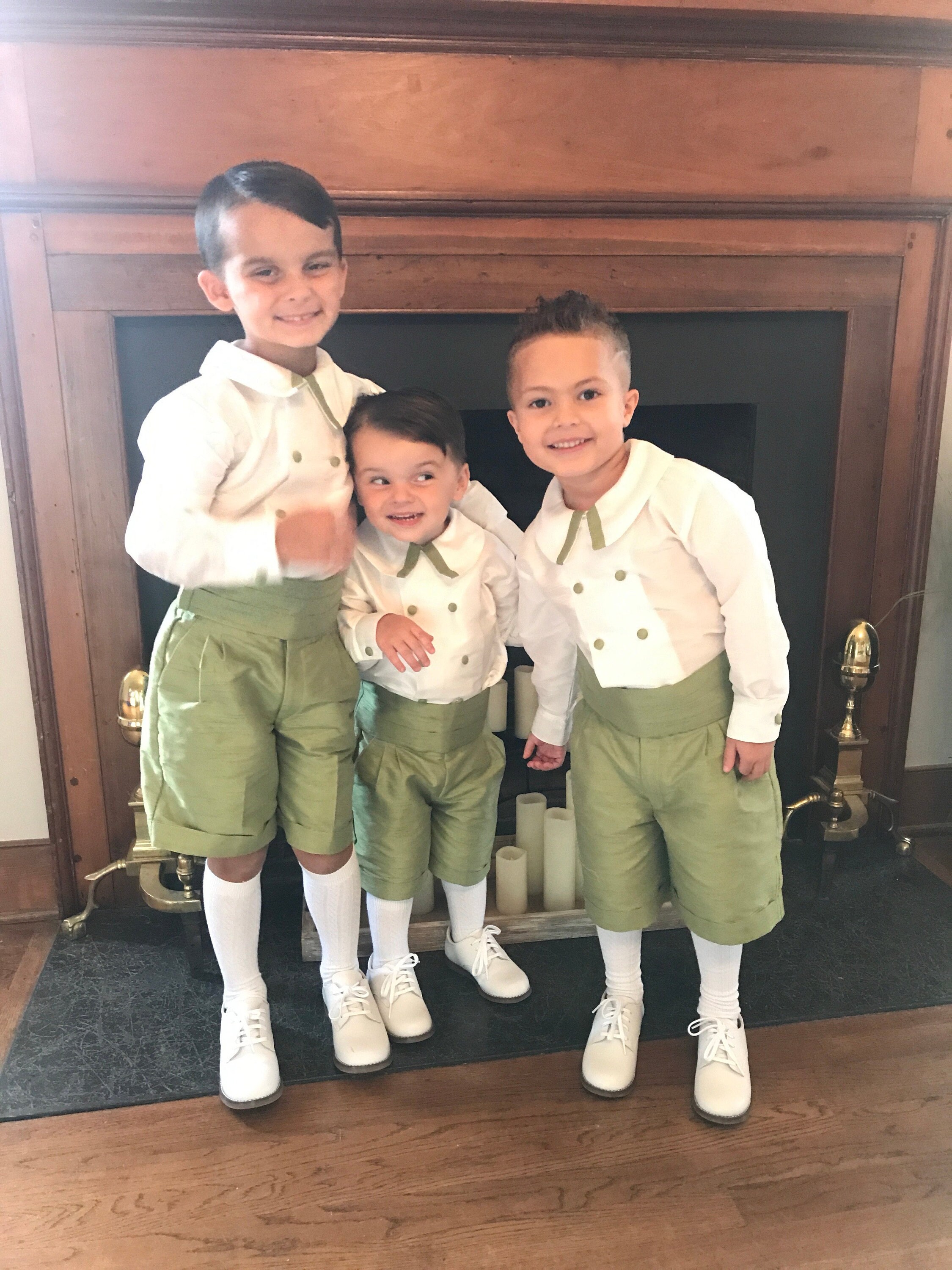 Vintage style toddler boys suspender shorts khaki little boys ring bearer outfit beige boys wedding outfit tan baby boys baptism outfit wovenshop. Discover dapper ring bearer suits and outfits perfect for walking down the aisle with the flower girl and of course the all important task of bringing the wedding rings real or faux to the alter.