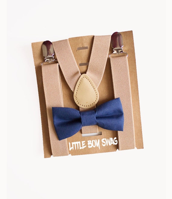 Navy Blue Bow Tie Khaki Suspenders For Page Boy Ring Bearer Etsy