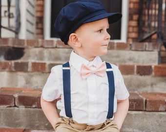 Ring Bearer Outfit Navy Suspenders Dusty Rose Blush First Etsy
