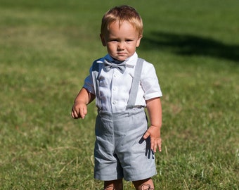Boy linen suit suspendered shorts and bow tie ring bearer outfit christening suit first birthay clothesbaptism overalls. Jun 2 2020 explore theboytiques board bow ties and suspenders followed by 229 people on pinterest. 47 out of 5 stars 548.