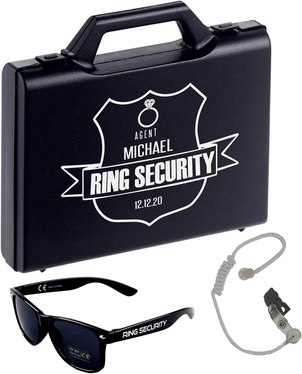 Deluxe Ring Security Box Set W Personalized Sunglasses Security Badge Thermos Ring Bearer Pillow Alternative 2525875 Weddbook