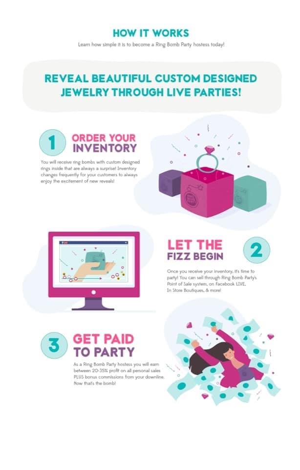 Now thats the bomb. As a ring bomb party hostess you will earn between 20 35 profit on all personal sales plus bonus commissions from your downline. Join us every weeknight as we reveal gorgeous rings valued up to 1000 live.