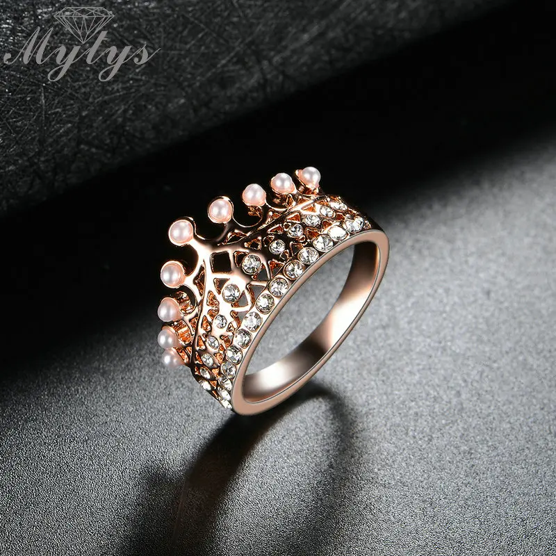 Mytys Brand New Design Rose Gold Crown Ring For Girls And Women Birthday Gift Princess Party Jewelry Fashion Accessory R388 Rings Aliexpress