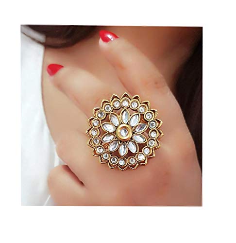 Khushal Rajputi Stylish Jadaw Design Ring Inspired Of Bollywood Free Size Adjustable Wedding Diamond Jewellery Finger Ring Rings For Girls And Women Brass Alloy Pearl Gold Plated Ring Price In India