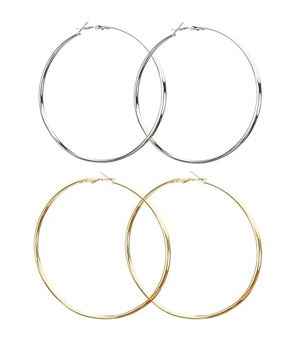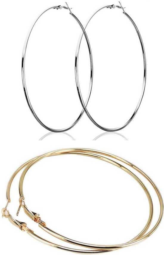 Buy Skn Jewellery Polished 9cm 90mm Large Circle Hoop Ear Bali Ring Earrings Combo For Women Girls Gold Silver 9cm At Amazon In
