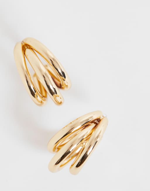 Asos Design Hoop Earrings In Triple Row Design In Gold Tone Asos
