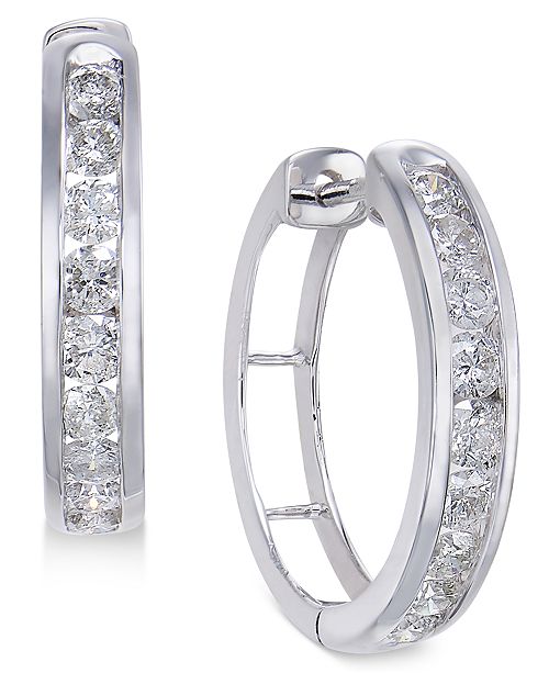 Macy S Diamond Hoop Earrings 1 Ct T W In Sterling Silver Reviews Earrings Jewelry Watches Macy S