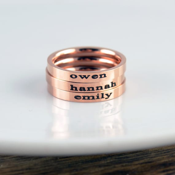 Personalized Stacking Rings Engraved Rings Moms Gift Moms Etsy