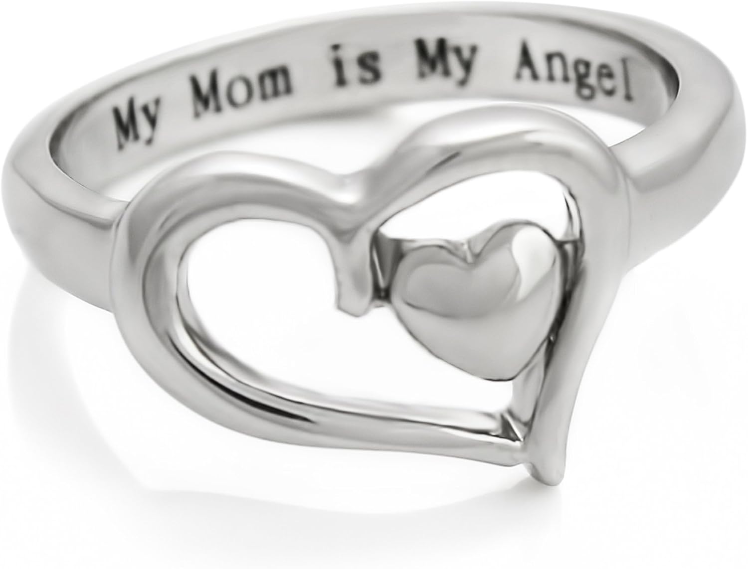 Mothers Heart Ring Double Heart Purity Ring For Mom Promise Ring For Mother My Mom Is My Angel Engraved Engraved Gift For Mother Ring Size 6 To 9 Amazon Co Uk Jewellery