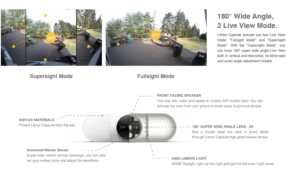 Amazon Com Litmor Floodlight Camera Smart Outdoor Motion Sensor Light With Camera 2k Hd 180 View 32gb Card Included Two Way Audio Talk And Siren Alarm Waterproof Home Security Light White