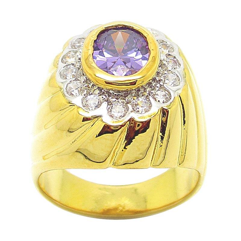 Jual Tangems Oval Amethyst With White Cz Diamond Men Ring Gold 6250 Murah Maret 2020 Blibli Com
