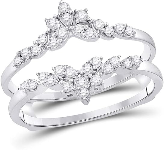 Twobirch 0 5 Ct Diamonds G H I2 I3 Traditional Style Cathedral Wedding Ring Guard Enhancer In 14k White Gold 1 2 Ct Twt Size 3 To 15 In 1 4 Size Intervals Engagement Rings And Wedding Bands