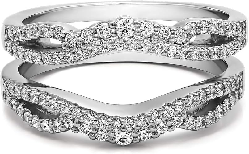 Twobirch Sterling Silver Criss Cross Infinity Ring Guard Enhancer With White Diamonds G I2 0 24 Ct Engagement Rings And Wedding Bands
