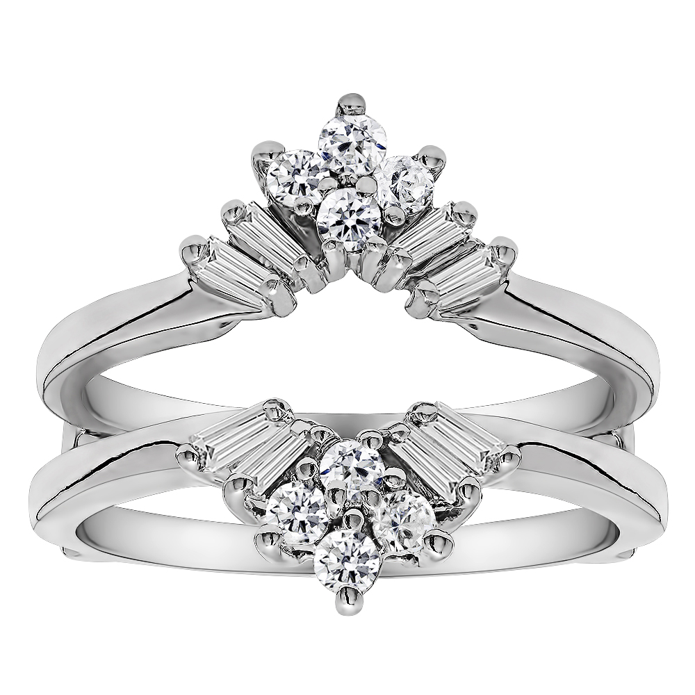 Silver Gems Factory 14k White Gold Plated Double Wedding Ring Guard Enhancer With Cubic Zirconia Wantitall