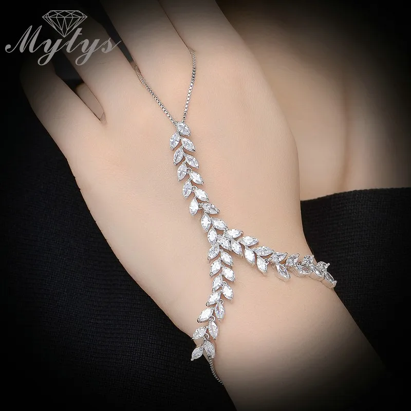 Mytys Fashion Trendy Slave Bracelet Ring Hand Palm Bracelet Connected Finger Ring Zircon Vine Leaf Chain Bracelet With Ring R979 Connected Ring Bracelet Ring Bracelet Connectedring Connected Bracelet Aliexpress