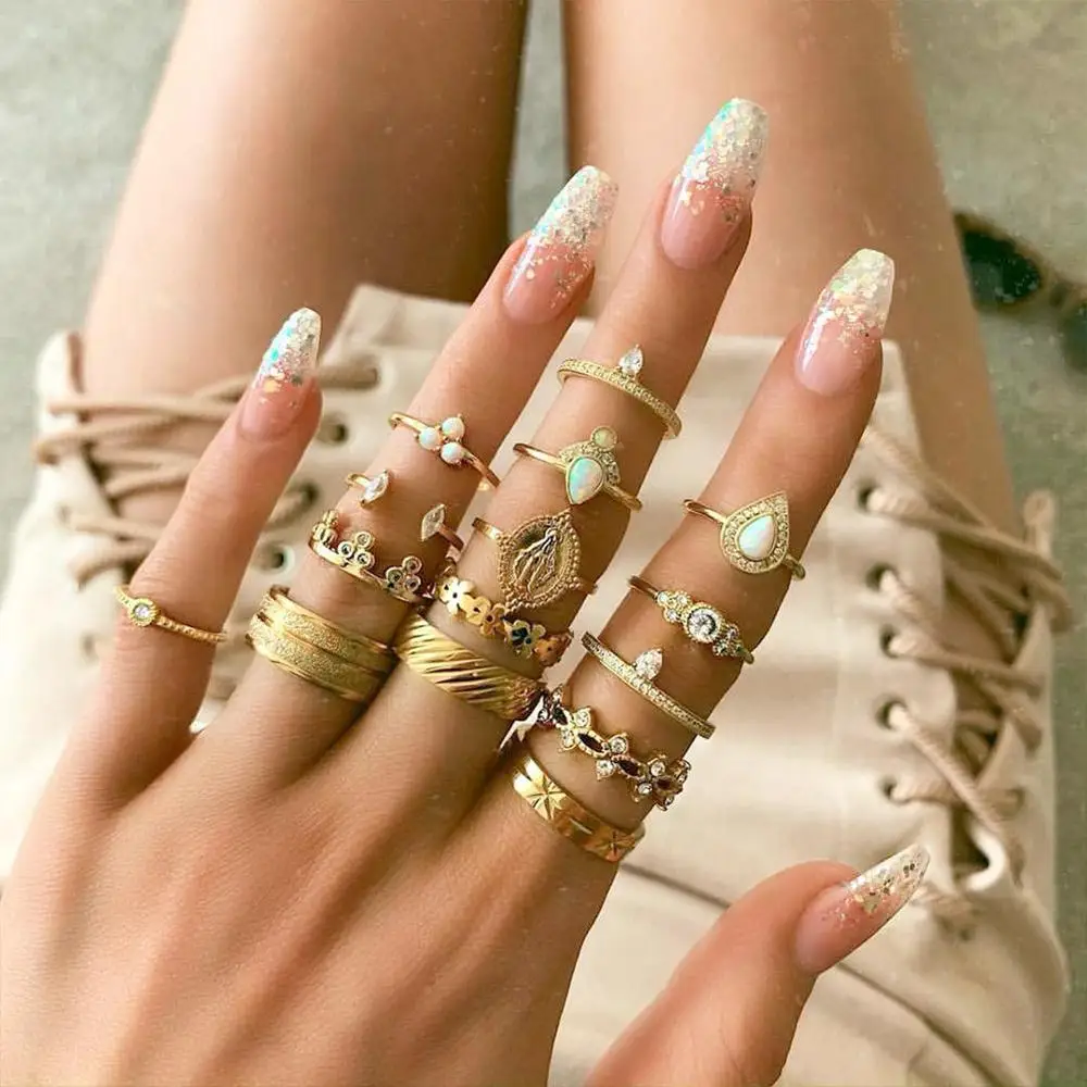 Amazon Com Victray Boho Gold Ring Set Joint Knuckle Carved Finger Rings Stylish Hand Accessories Jewelry For Women And Girls Pack Of 15 Clothing