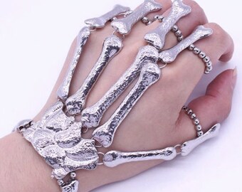 Skeleton Hand Statement Bracelet Skeleton Bracelet Jewels Hand Skeleton Accessories Ring Hand Jewelry Bones Silver Ring Jewelry Silver Ring Hand Rings Hand Ring Bracelets Bones Jewelry Halloween Jewerly Punk Grunge Jewelry Silver