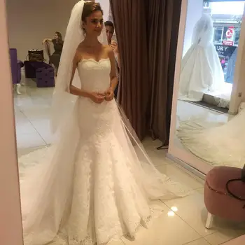 Gorgeous Lace Mermaid Wedding Dress Sexy Strapless Wedding Gowns Brush Train Sweetheart Appliques Bride Dresses Vestido De Noiva Aliexpress