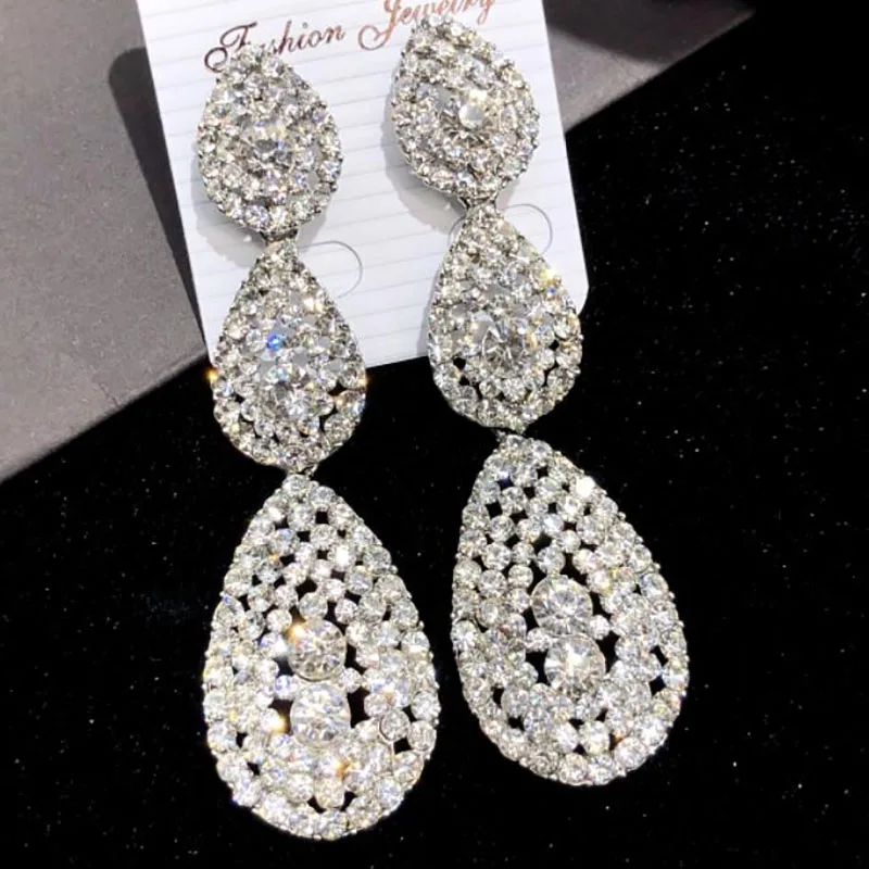 Siver Color Large Drop Earrings Bride Teardrop Shape Crystal Bridal Earrings Women Rhinestone Dangle Wedding Earring Aliexpress