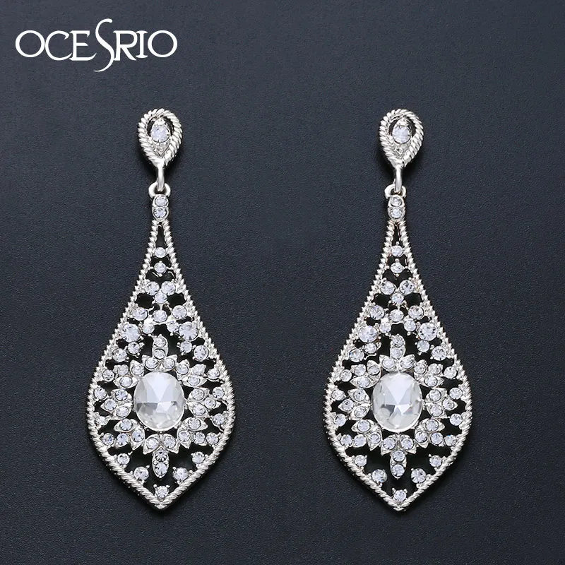 Ocesrio Silver Color Wedding Earrings For Brides Women Crystal Bride Dangle Earrings With Stones Jewelry Kolczyki Slubne Ers N61 Drop Earrings Aliexpress