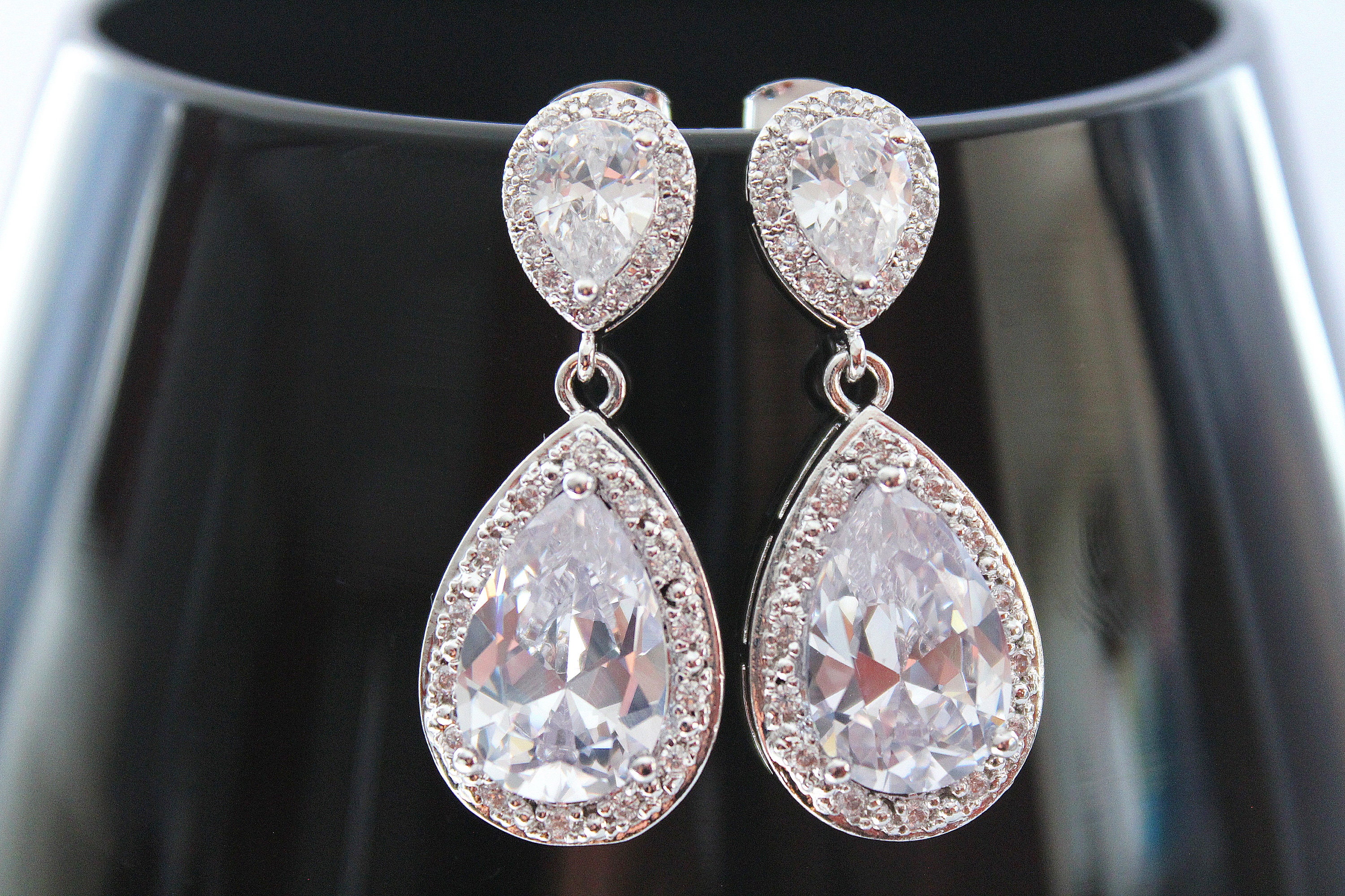 Wedding Earrings Bridal Earrings Cubic Zirconia Teardrop Bride Earrings White Crystal Wedding Earrings Wedding Jewelry Cz Bridesmaid Gift 2440311 Weddbook