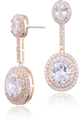 Amazon Com Gold Cubic Zirconia Bridal Earrings Wedding Earrings For Bride Bridesmaids Mother Of Bride Oval Big Crystal Diamond Rhinestone Dangle Earrings For Party Prom Pageant Gala Earrings For Women Girls Jewelry