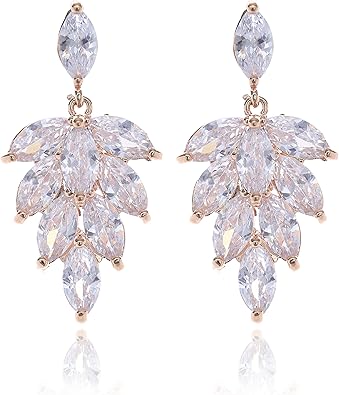 Crystal Cluster Earrings For Wedding Rose Gold Plated Marquise Cz Crystal Rhinestone Leaf Floral Bridal Earrings For Bride Bridesmaids Mother Of Bride Party Prom Pageant Amazon Co Uk Jewellery