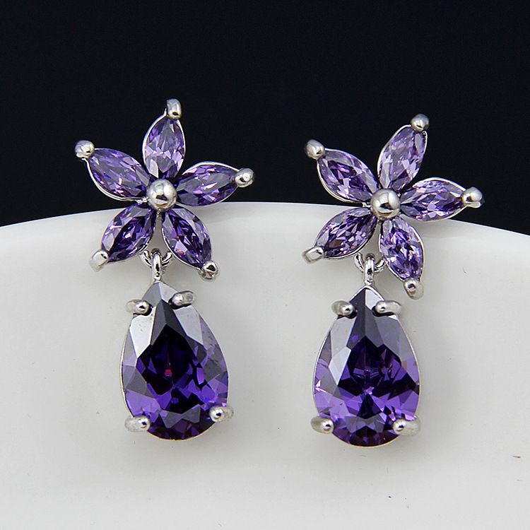 Dazzling Purple Diamond Bridal Earrings Flower Shape Luxury Cubic Zirconia Dangle Wedding Earrings Bridesmaid Earrings In Stock Wedding Jewelry Trends Wedding Necklaces For The Bride From Yate Wedding 13 57 Dhgate Com
