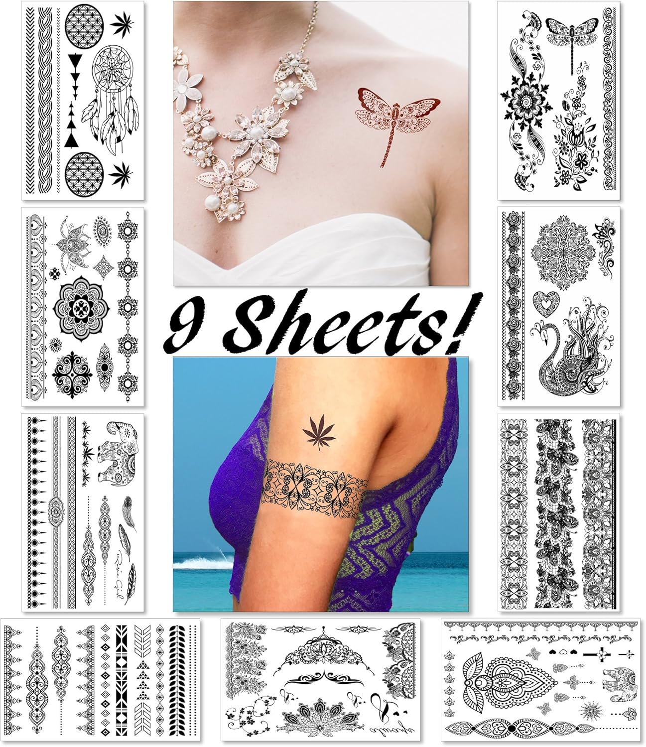 Black Lace Temporary Tattoos For Women Teens Girls 9 Sheets Black Lace Fake Stickers Bride Wedding Tattoo Designs Jewellery Tattoos 100 Black Flash Realistic Waterproof Transfer Amazon Co Uk Beauty
