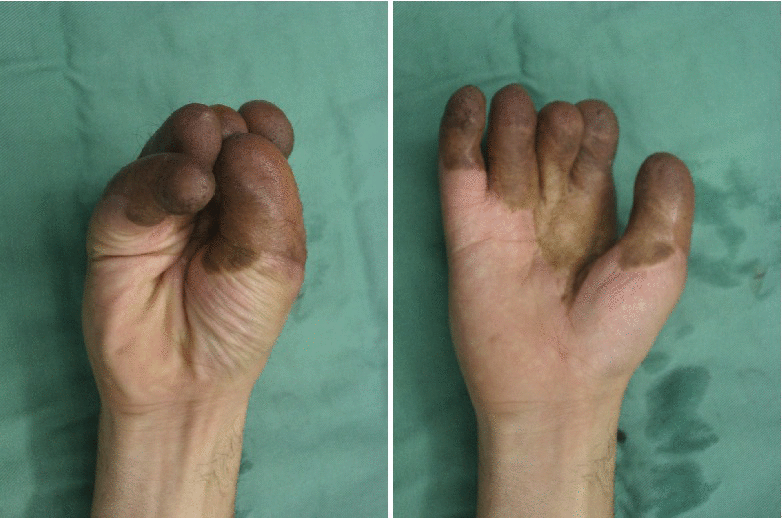 Full Text Successful Repair Of Total Hand Degloving Injury By Avulsed Skin In Si Tcrm