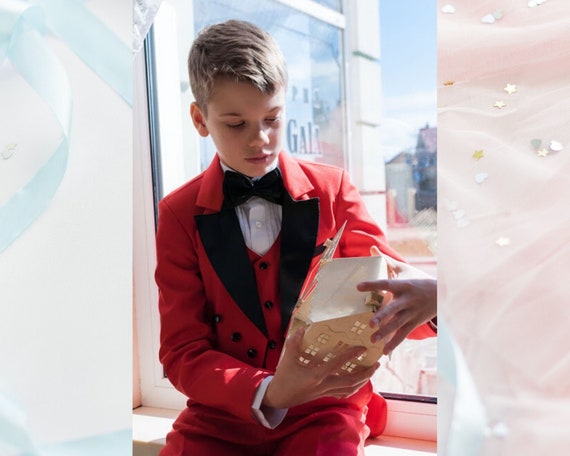 Red Boy Tailcoat Baby Boy Wedding Outfit Boy Tuxedo Formal Boy Etsy