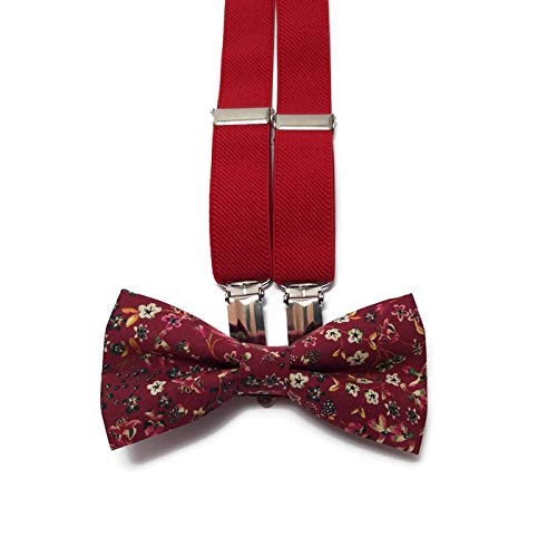 Amazon Com Red Elastic Y Back Suspenders Burgundy Liberty Of Floral Wedding Bow Tie Set For Ring Bearer Groom Groomswoman Father Son Matching Outfits Rigbearers Usher Handmade