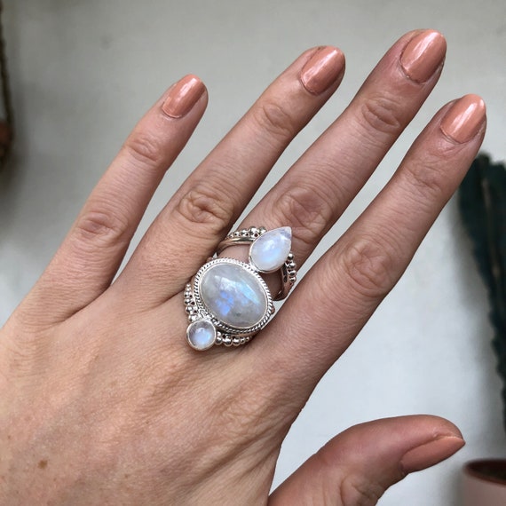 Amalthea Ring Chunky Sterling Silver Rainbow Moonstone Ring Etsy