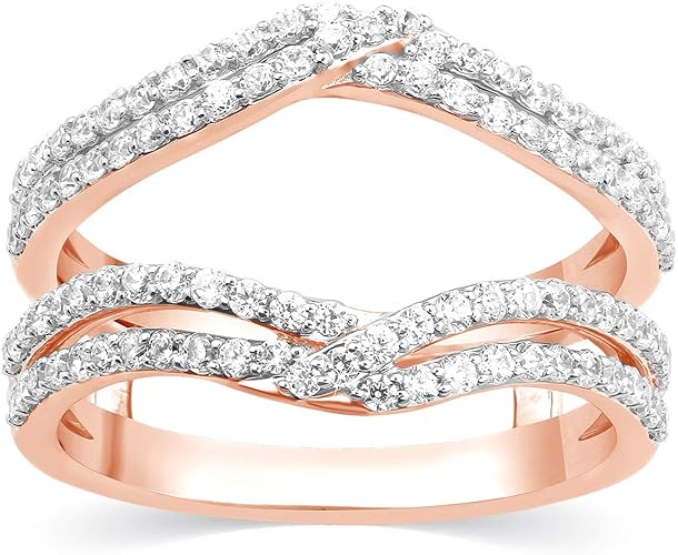 Amazon Com Carats For You 10k Rose Gold Round Cut Real Natural Diamond Engagement Ring Enhancer Wrap Guard For Women Jewelry