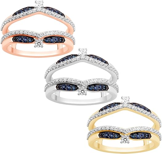 Amazon Com Carats For You 10k Rose Gold Round Cut Real Natural Diamond Blue Sapphire Engagement Ring Enhancer Wrap Guard For Women Jewelry