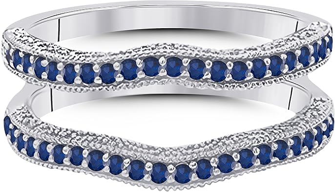Amazon Com Silver Gems Factory 14k White Gold Over Alloy 0 50 Ct Round Cut Lab Created Blue Sapphire Ring Enhancer Solitaire Ring Guard Jewelry
