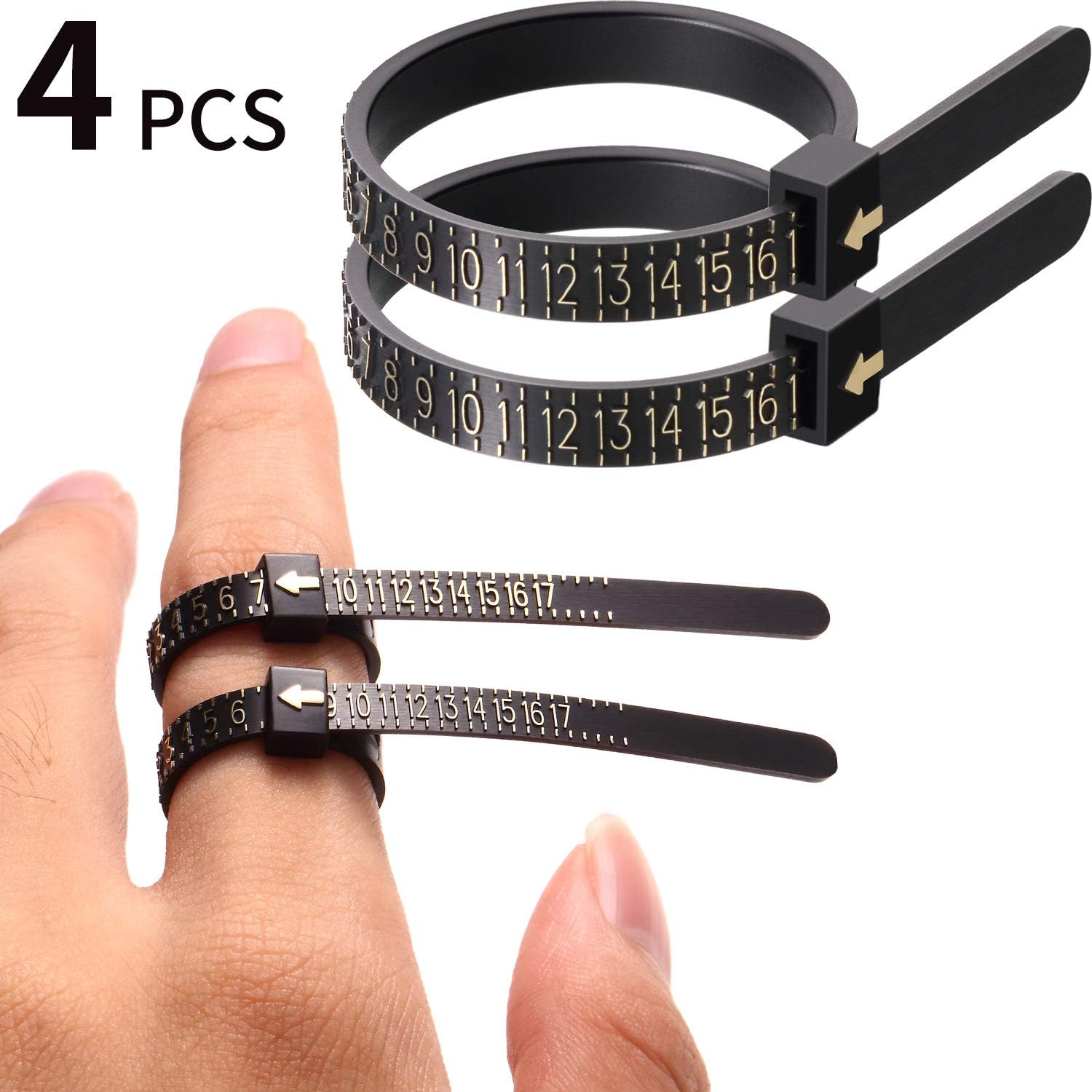Amazon Com Black Us Ring Sizer Set Jewelry Measurement Plastic Finger Sizer Ring Gauge Measuring Tool Belt For Women Men Kids 4 Packs Arts Crafts Sewing