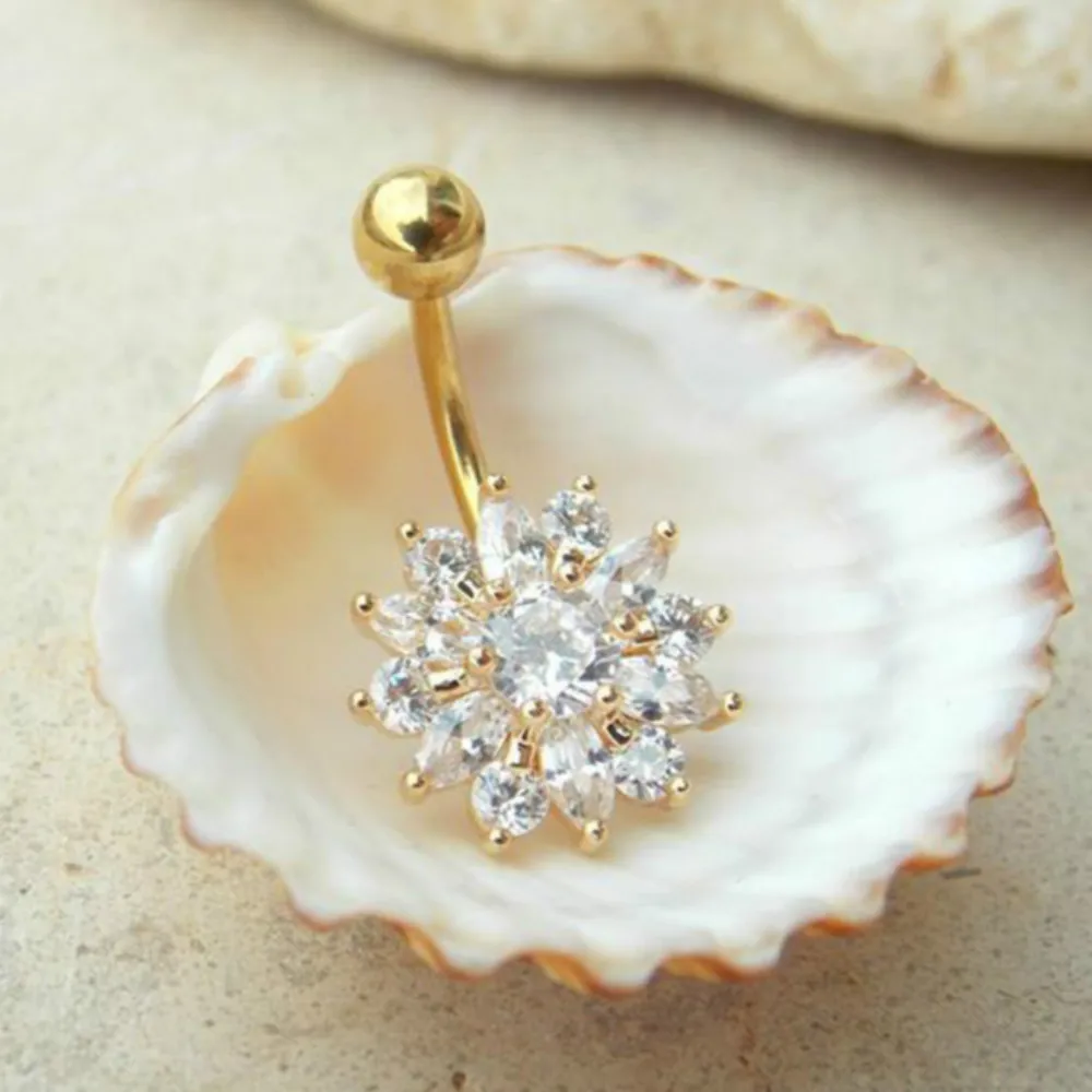 Gold Rose Gold Belly Button Bars Flower Crystal Navel Ring Body Bar Piercing Ebay