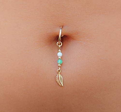 Leaf Belly Button Piercing Boho Gold Navel Ring Handmade Opal Hoop Jewelry Amazon Co Uk Handmade