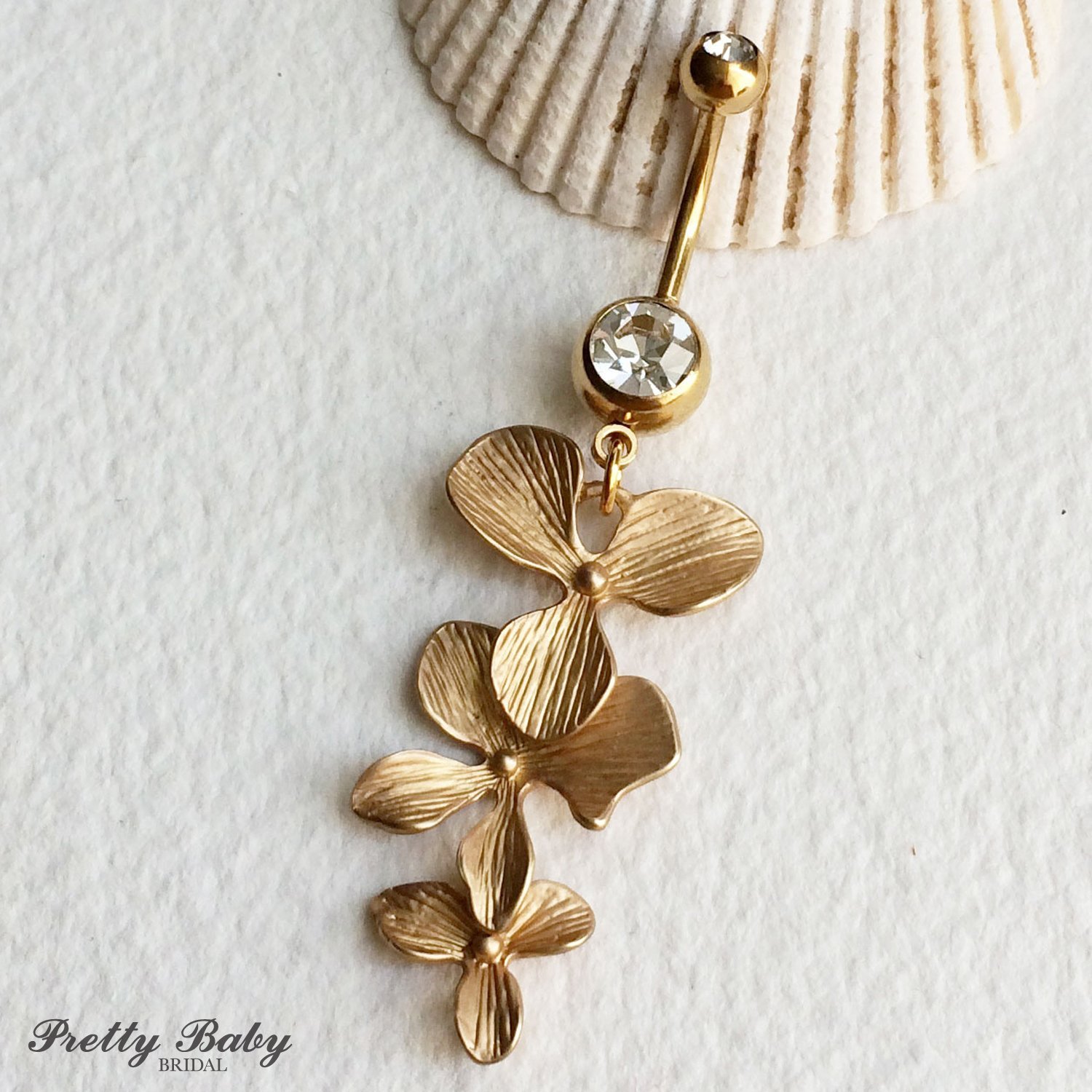 Amazon Com Orchid Belly Button Ring Gold Belly Ring Belly Button Ring Orchid Bellybutton Ring Flower Dangle Body Jewelry Gold Belly Ring Piercing Handmade