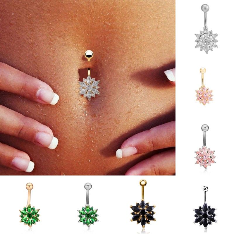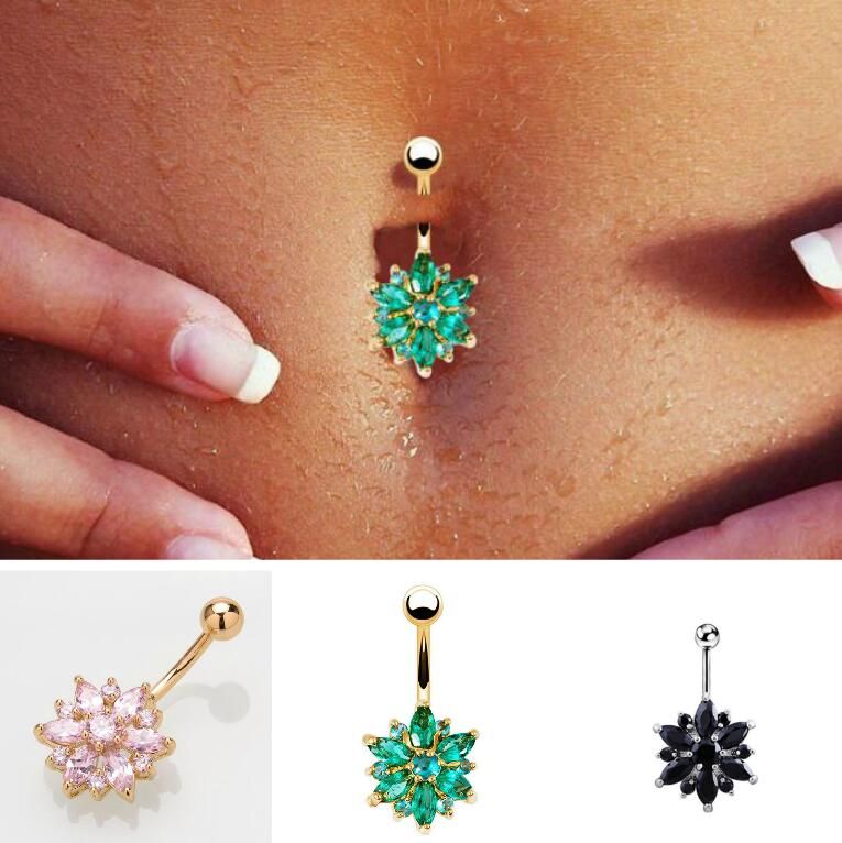 2020 Hot Sale Green Pink White Black Purple Flower Crystal Navel Rings Gold Belly Button Ring Stainless Steel Navel Piercing Jewelry From Zcqiqi1984 1 44 Dhgate Com