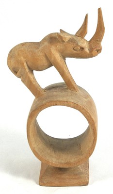 Rhino Napkin Carved Ring Hand Holder Wood African Wooden Animals Rare Safari Vtg Ebay